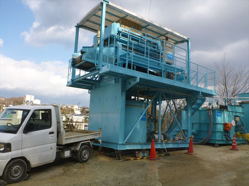 「濁水処理設備」とは大きなビルや病院、スタジアム、トンネルといった建物等を建てたりする際に出てくる「水又は土壌に含まれた有害物質」をきれいにし河川に流したり、有害物質の除去、処理する機械です。